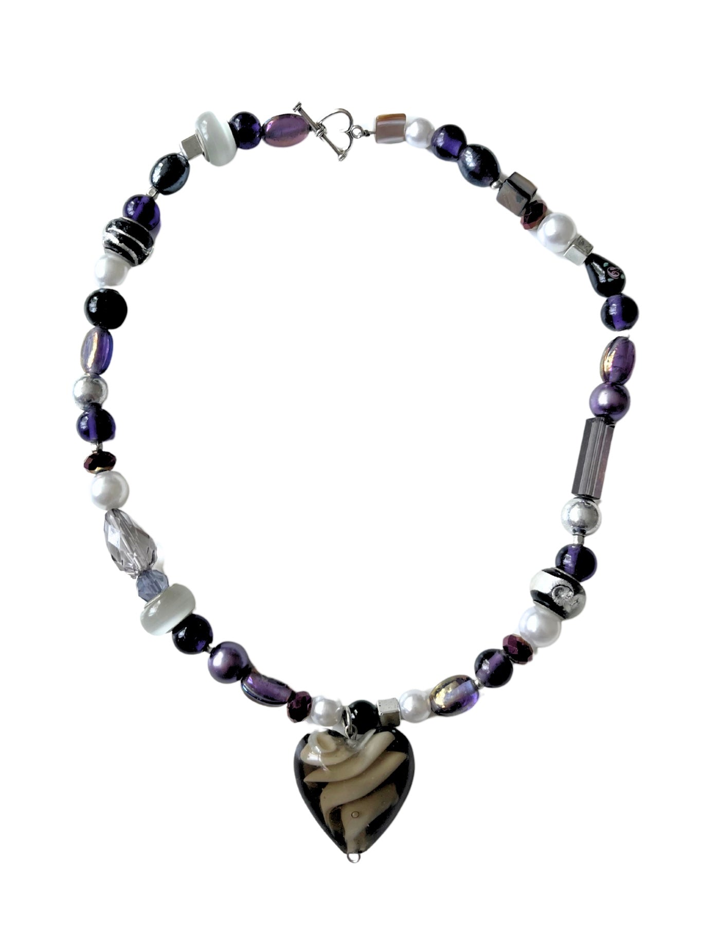 This necklace has been crafted entirely from sustainably sourced, secondhand materials, handpicked by me to create a truly one-of-a-kind piece.